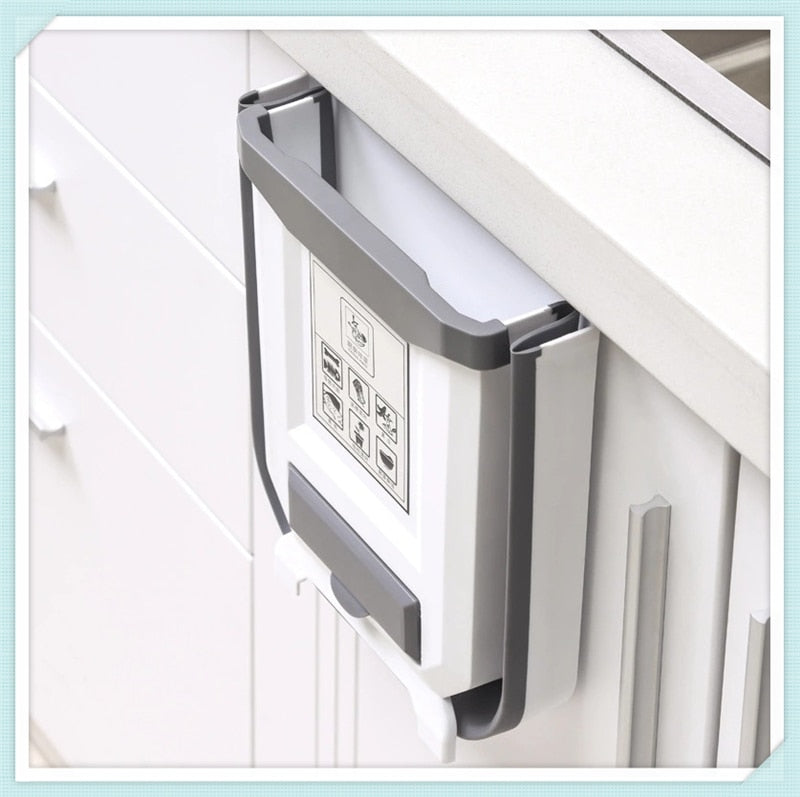 1. It can be easily hang on the kitchen door or cabinet door, easy to mount and it stores nicely. This garbage container is easy to clean up and waterproof.