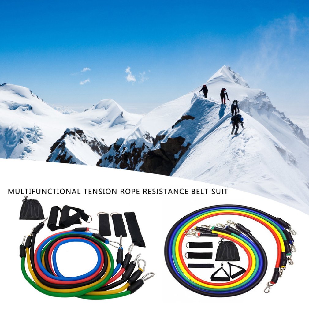 - Different color adjustable resistance bands: Yellow (10 lbs), Blue (20 lbs), Green (30 lbs), Black (40 lbs), Red(50 lbs). All Whatafit exercise bands are 36" in length, and can be used alone stacked in any combination to a maximum equivalent of 150 lbs.