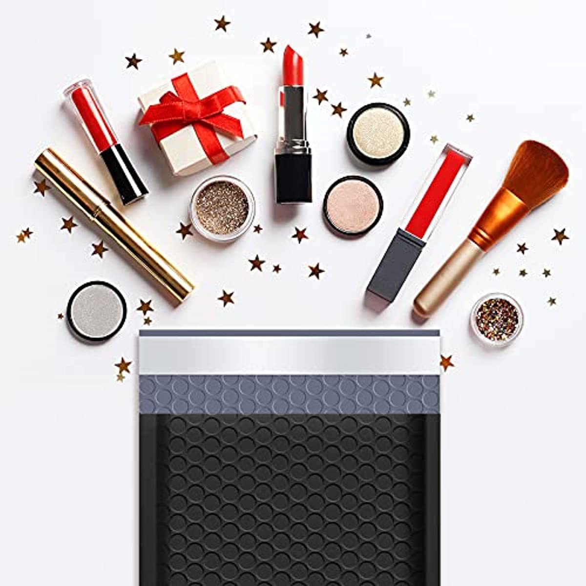 Bubble Mailers 4x8 Inch Black 50 Pack Poly Padded Envelopes Small Business Mailing Packages Opaque Self Seal Adhesive Waterproof Boutique Shipping Bags for Jewelry Makeup Supplies